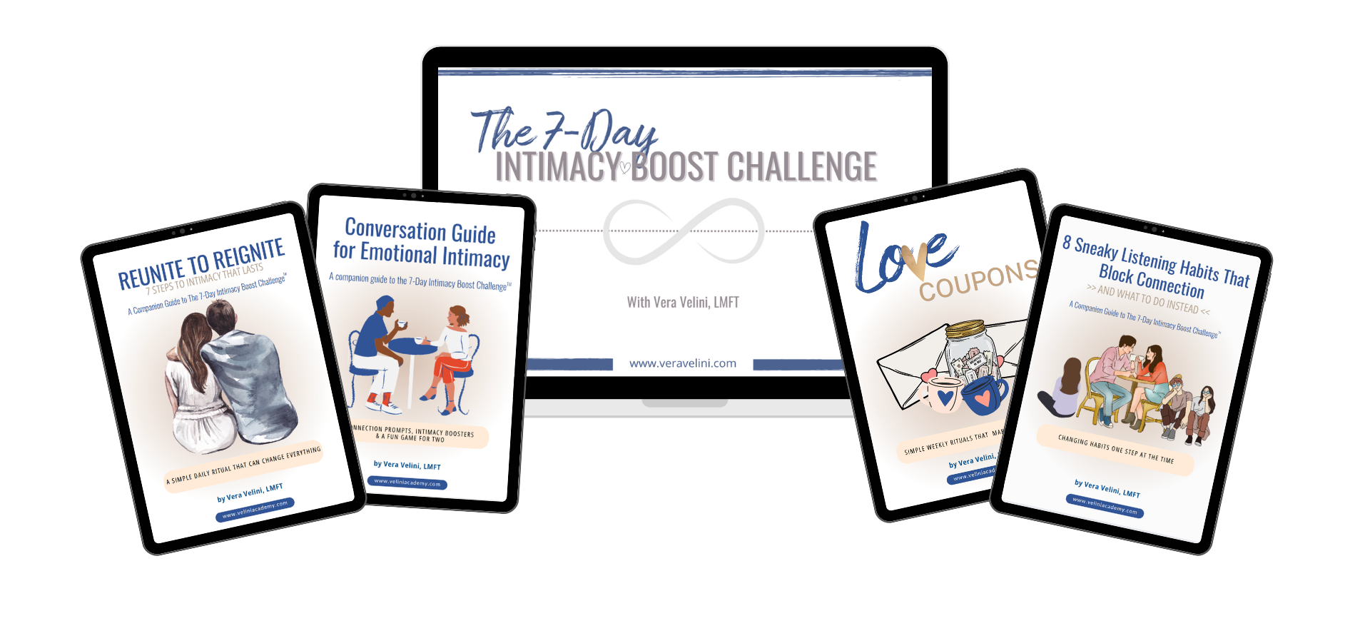 This challenge was designed by Vera Velini, a Licensed Marriage & Family Therapist with 15+ years of clinical and coaching experience, to help couples SHIFT from DISCONNECTION to CONNECTION in days — not months.